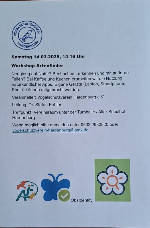 Samstag, den 14. März Workshop Artenfinder und Co.