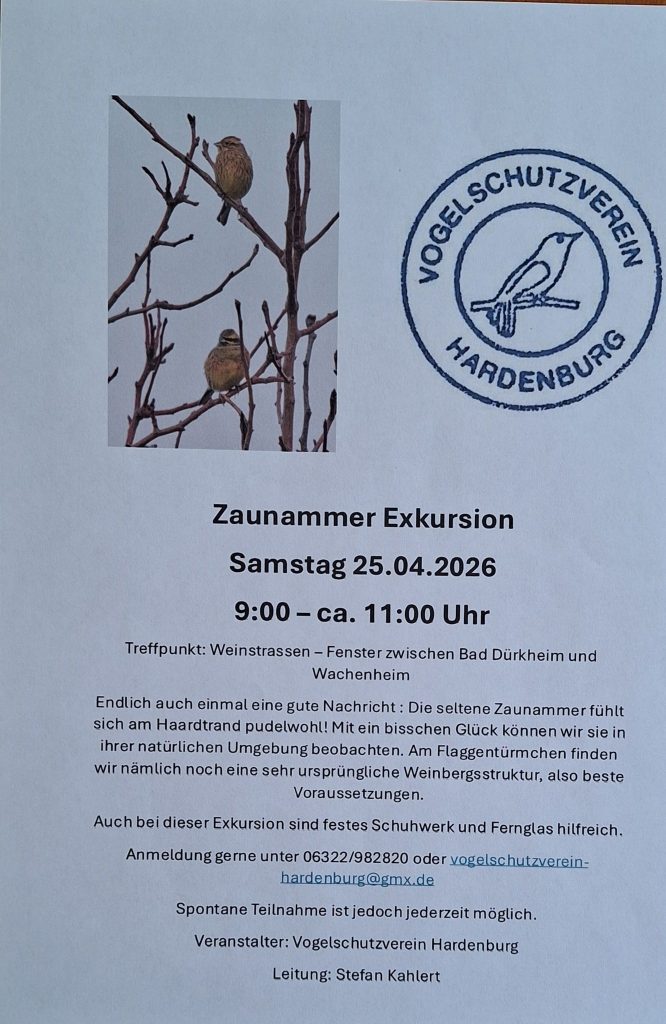 Anmeldung gerne unter 06322/982820 oder vogelschutzverein-hardenburg@gmx.de